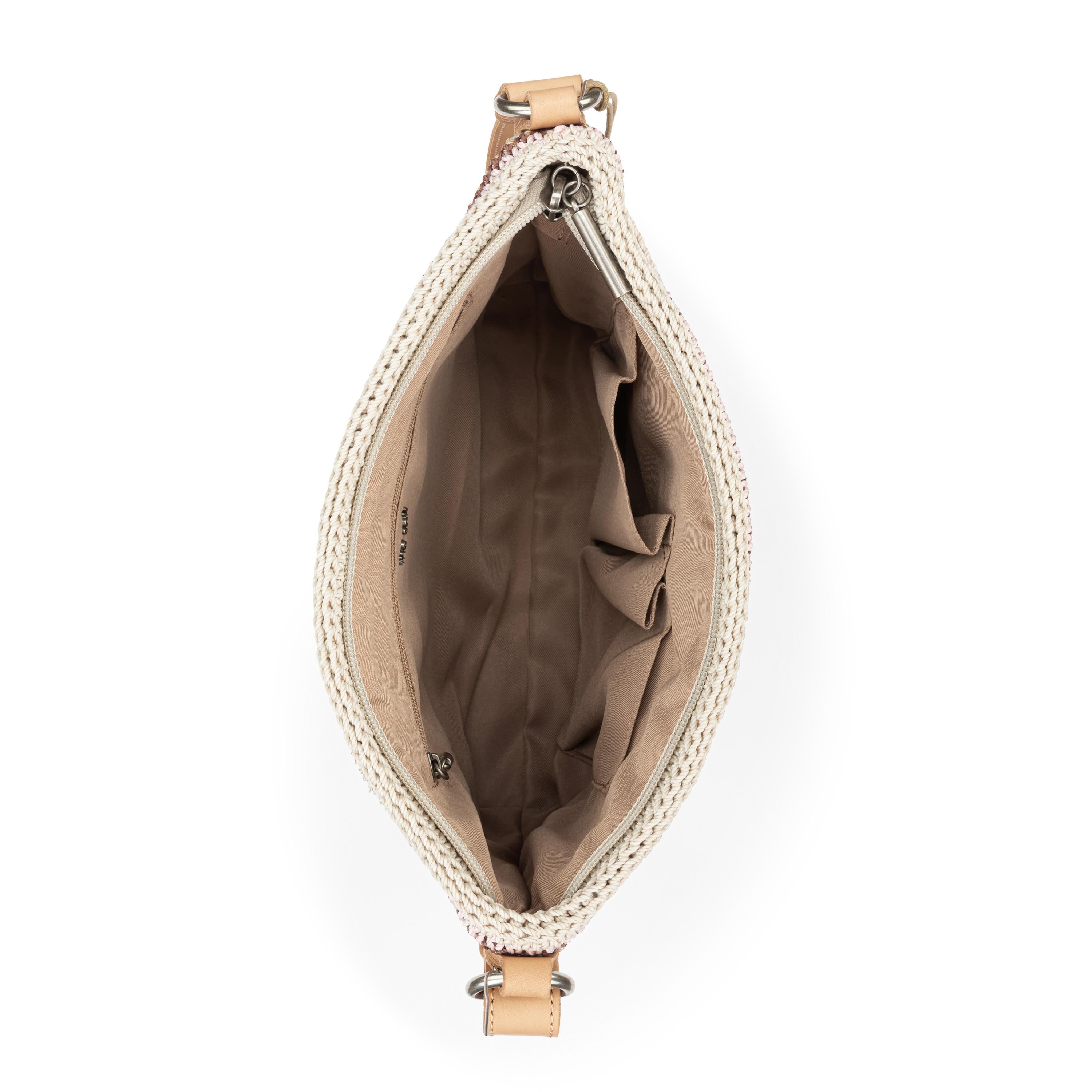 Found: a manageable bag with real toting capacity. The Melrose Crossbody is beautifully cast in our signature hand crochet using fibers made from recycled ocean-bound plastics. Designed with plenty of pockets and a long adjustable strap, this classic design looks and feels perennially fresh.